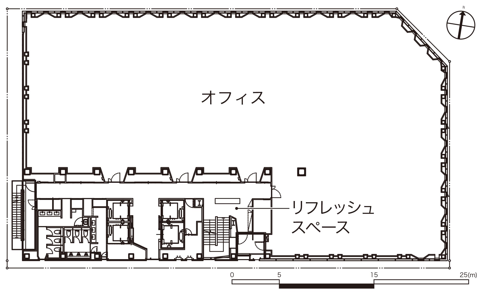 This office building is located facing Sapporo Station Street and directly connected to the underground walkway “Chi-Ka-Ho”. Although central Sapporo has both underground and aboveground urban arteries, there are few places where the bustle of the two can be felt in succession. An open atrium faces the intersection, gently connecting the bustle of the ground level and underground through stairs and split-level floors, creating a public square open to the community.
