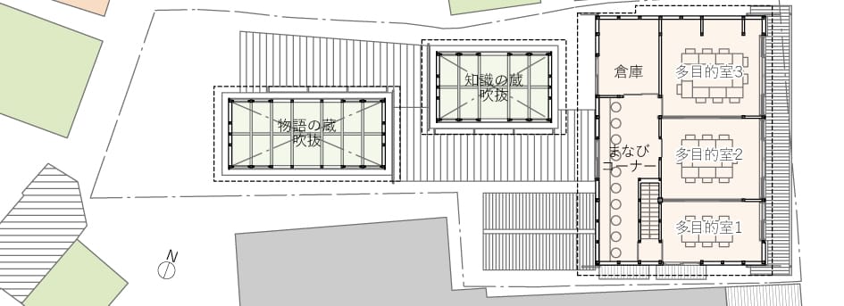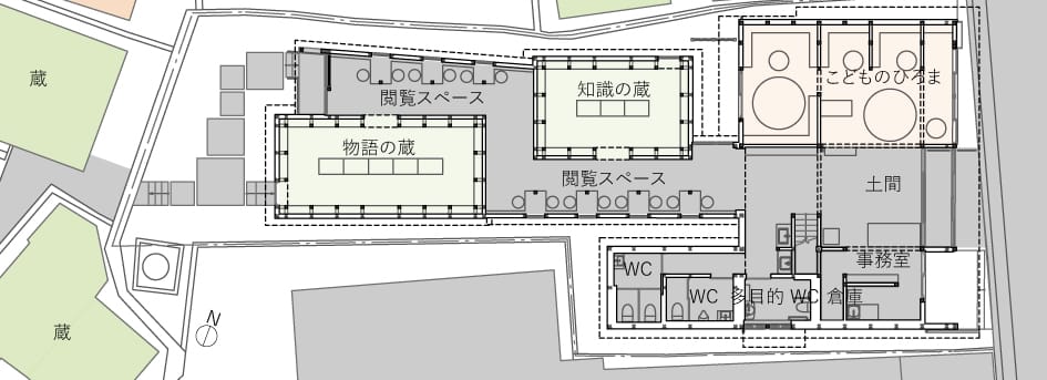 Ine Town in Kyoto Prefecture, famous for its boat houses, is experiencing a decline in population. A historic private house that had been donated by a local resident was renovated and extended to create a library for the townspeople. The house in Ine is made up of a boat house, main building and storehouse, but as the renovation this time was of the main building, a storehouse for books was added. It is connected to the existing storehouse at the back, recreating a landscape characteristic of Ine. The renovation reused the materials from before, and the old and new buildings were unified.