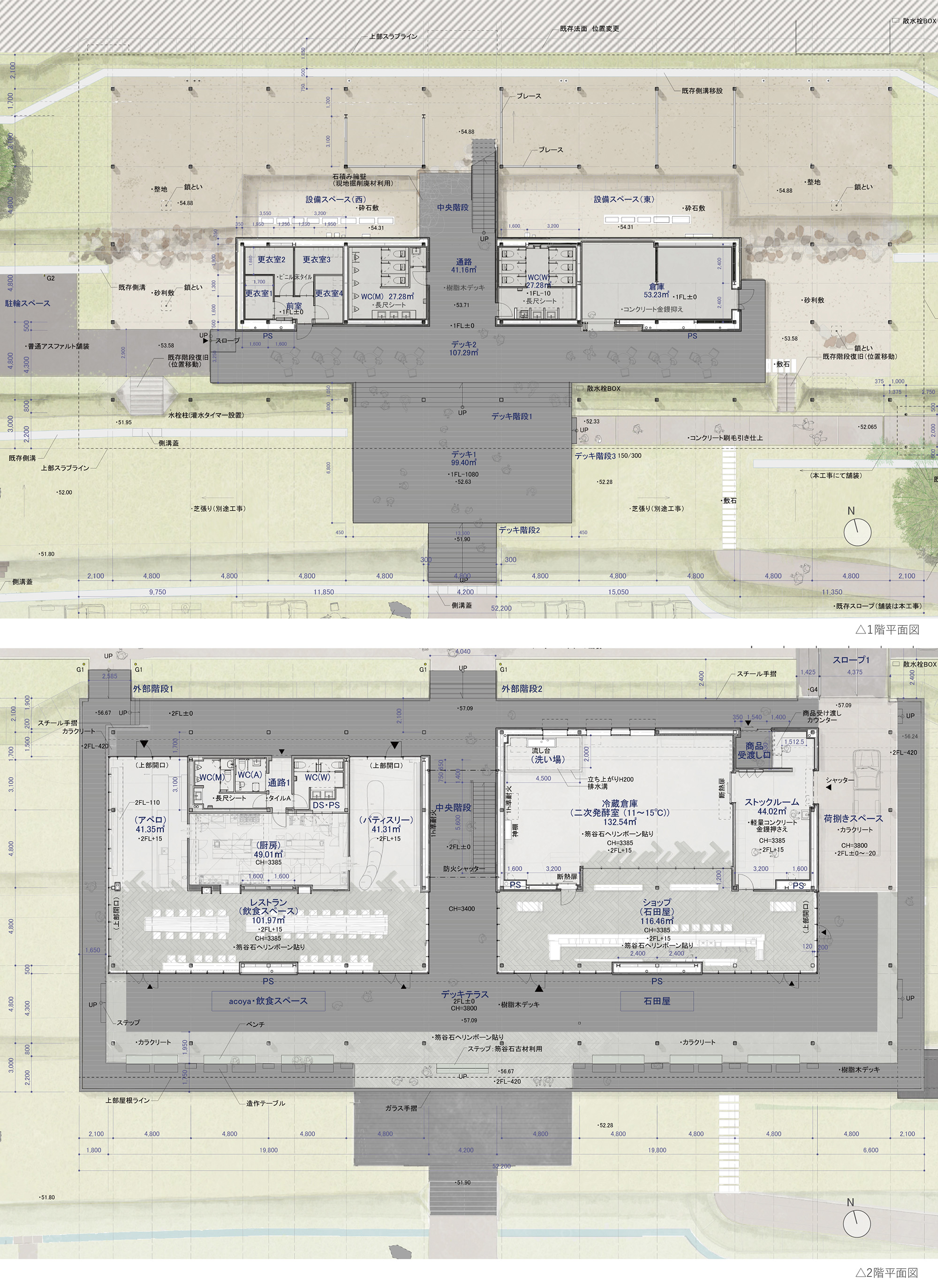 Eiheijicho, Fukui. This project is set in a landscape where the Kuzuryu River and river terraces stretch out before you and is a local initiative by Kokuryu Sake Brewing. This celebrates the charm of fermentation while preserving traditional methods. This design involves snow-resistant roofs and terraces that easily integrate with terraced rice fields, creating a natural extension of the landscape. These elements subtly merge with the original landscape, inviting visitors to immerse themselves in the atmosphere while savoring sake. The interplay between floating and secret sensations creates synergy, making the place truly remarkable.
